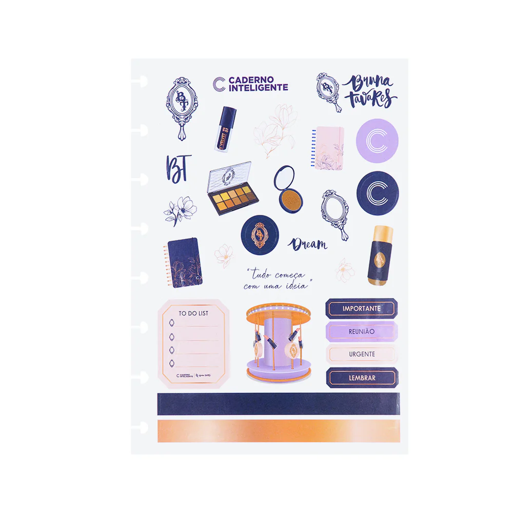 Personalize de forma fofa e criativa com a folha de adesivos Caderno Inteligente By Bruna Tavares.