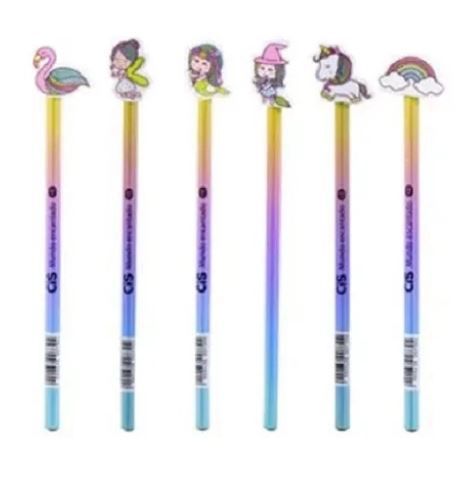 Graduaçao HB, corpo decorado e borracha no topo, com as opções em formato de: Unicórnio, sereia, fada, bruxinha, flamingo e arco íris.