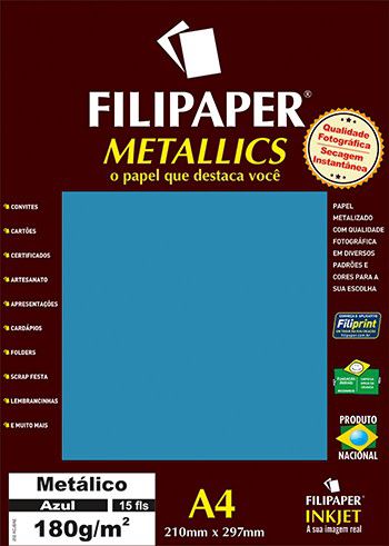 Papel A4 180g 15f Metalico Azul - Filipaper