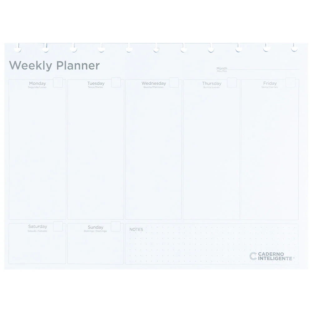 Desenvolvido para encaixar perfeitamente na base My Frame voce tem a liberdade de se planejar com antecedencia e ter total controle da sua semana, tudo isso na sua mesa de estudo ou no seu ambiente de trabalho ao lado do computador ou teclado.Tudo para deixar a sua organizacao semanal mais estilosa, pratica e facilitar a visualizacao dos compromissos da semana com a liberdade de levar seu planner de mesa para onde voce for, sem carregar peso!